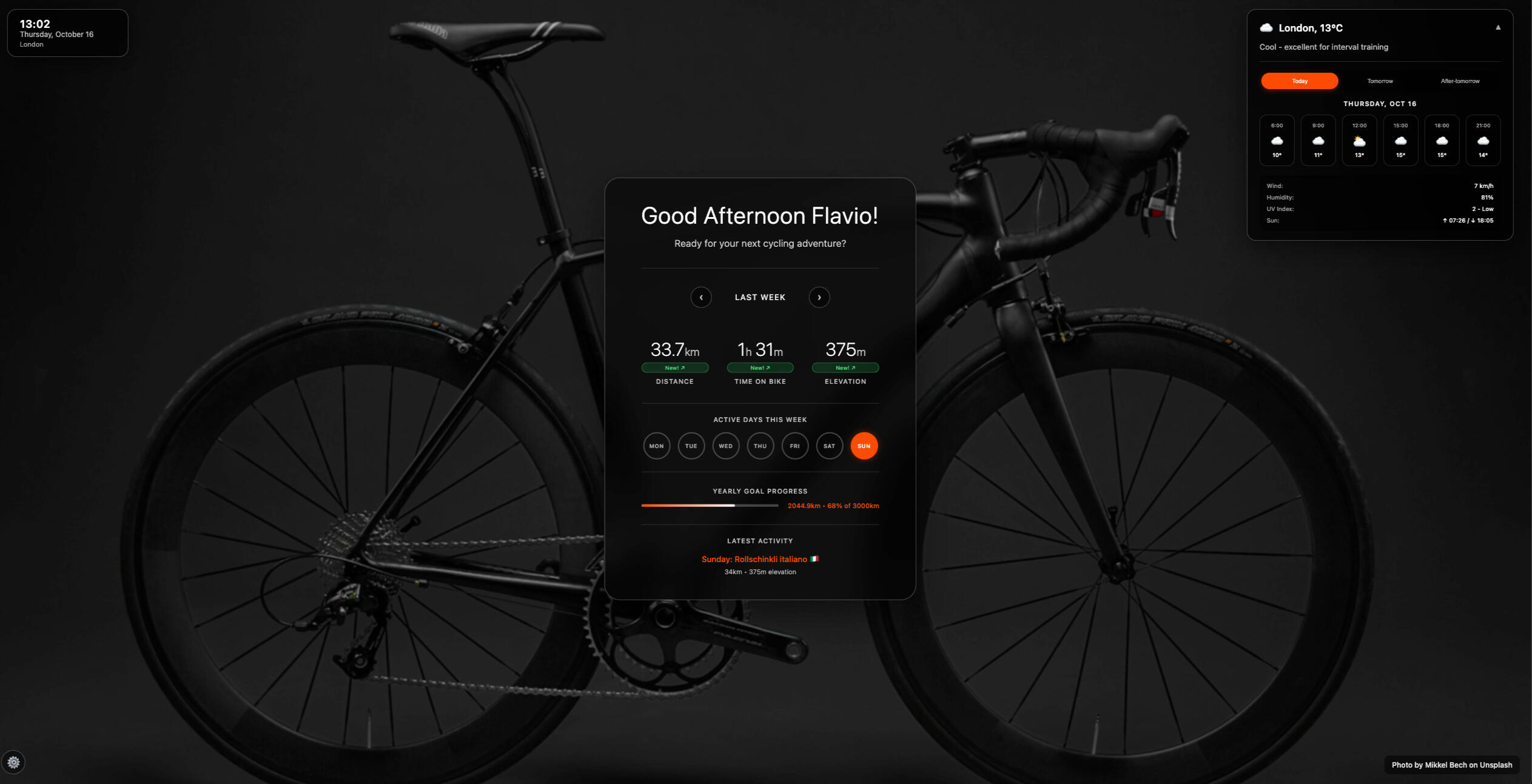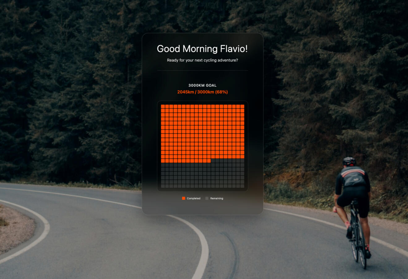 Transform each new tab into your personal cycling achievement gallery.Your most important stats, visualized clearly β and beautifully.